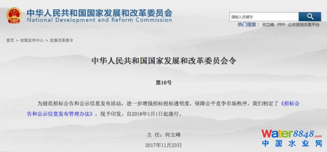 國家發(fā)改委發(fā)布《招標(biāo)公告和公示信息發(fā)布管理辦法》,2018年1月1日起施行!