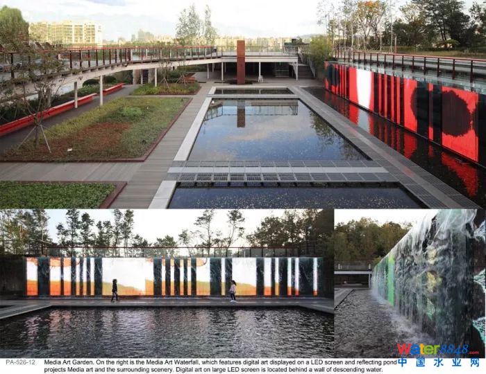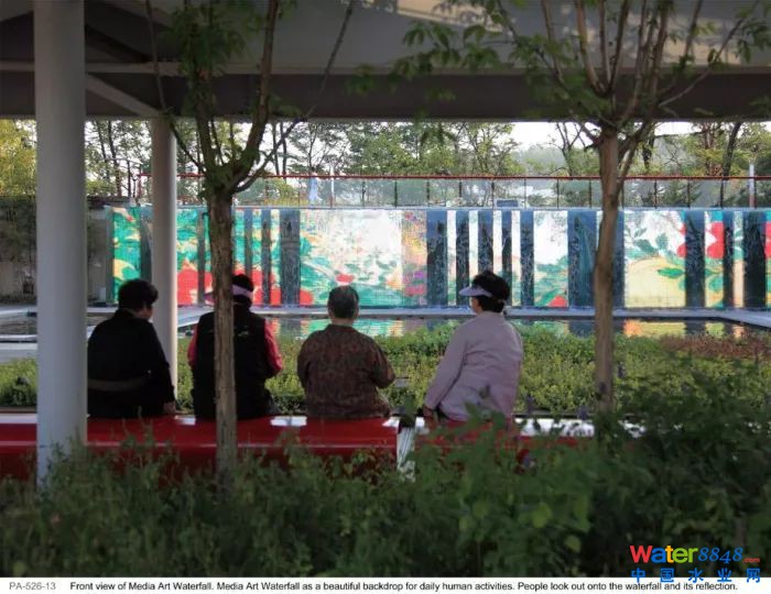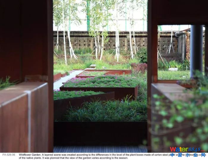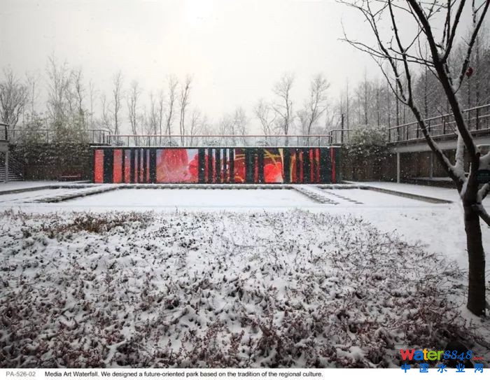 老的混凝土結(jié)構(gòu)與銹蝕鋼板交相呼應(yīng),形成各式尺度的花園,讓游客流連忘返。多媒體藝術(shù)跌水長40米,高三米,里面采用LED極速。這里一年中三個季節(jié)都允許游客,兒童在此嬉戲,享受水上游樂場的圖像和音樂。