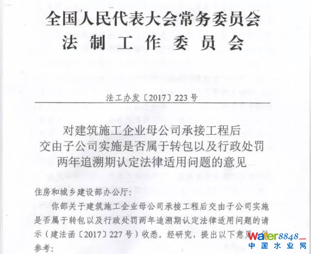 重磅!母公司中標子公司施工屬于轉(zhuǎn)包?全國人大法工委復函住建部給出意見!