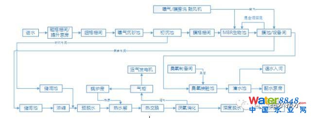 污水處理:預(yù)處理—MBR—臭氧—紫外