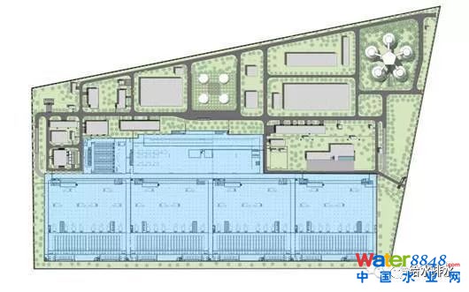 規(guī)模60萬(wàn)m3/d,地下式布置,占地面積約31.36hm2,其中地下部分占地約13hm2。豎向分為地面層、地下負(fù)一層、地下負(fù)二層。
