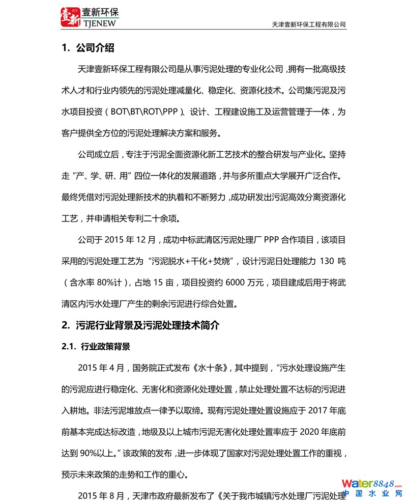 核心提示:天津壹新環(huán)保工程有限公司污泥全面資源化處置技術(shù)及工程案例