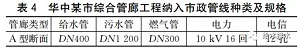 (2)綜合管廊的覆土深度需結(jié)合污水管道系統(tǒng)進(jìn)行適當(dāng)調(diào)整,管廊覆土深度4~5 m較為適宜。