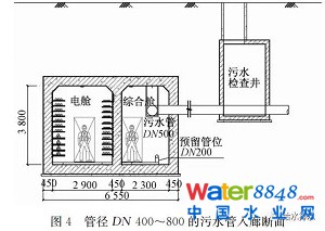 (4)污水管道進(jìn)入綜合管廊內(nèi),綜合管廊應(yīng)按現(xiàn)行國(guó)家標(biāo)準(zhǔn)《城市地下綜合管廊工程技術(shù)規(guī)范》的要求,設(shè)置相應(yīng)的通風(fēng)、照明、監(jiān)控等附屬設(shè)施。利用管廊結(jié)構(gòu)本體排水的污水艙,在加強(qiáng)結(jié)構(gòu)防腐的前提下,可視情況酌情考慮設(shè)置。