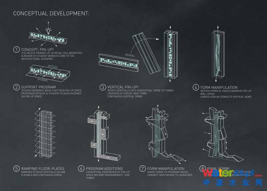 那有人會問,如果這是細節(jié),那設計的過程是什么?那是設計概念的發(fā)展,是從場地分析到概念到最終設計結果的整個推進流程。流程中定會遇到問題,問題的解決方法和思考過程是我們要展示的細節(jié)。細節(jié)和推進過程是相輔相成的關系,缺一不可。實際呈現(xiàn)在作品集中的話,大體是下面這個樣子: