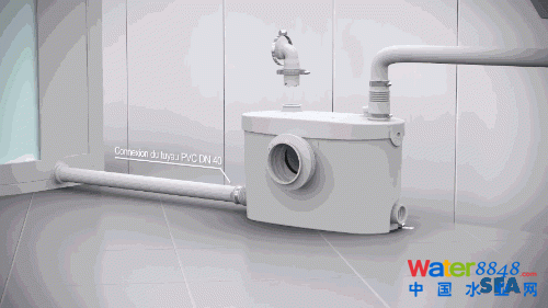 這個設(shè)備內(nèi)置有一個泵,所以把它安裝在馬桶后面,接上其他潔具(例馬桶、淋浴房、洗手臺)的排污管,它就能把污水抽到排污的主管道 ▼