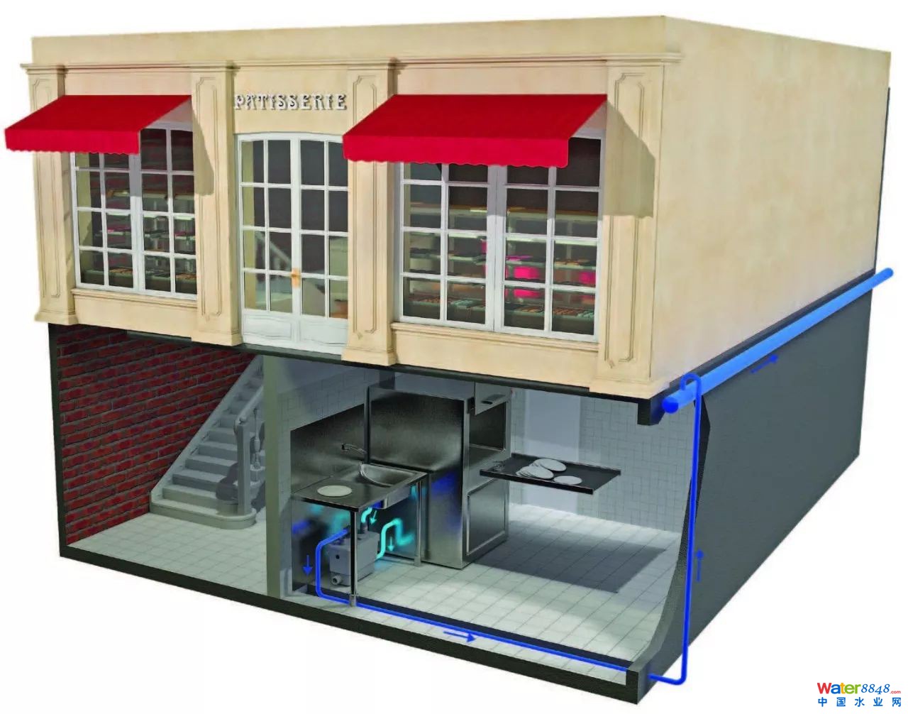店鋪調(diào)整用水管道距離示意圖 ▲