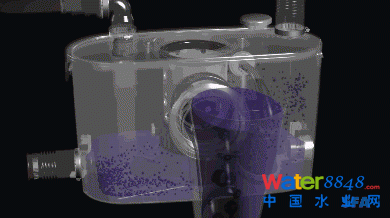 升利達(dá) 3 污水提升器內(nèi)置了粉碎研磨系統(tǒng)。首先通過粉碎機(jī)切碎污物 ▼
