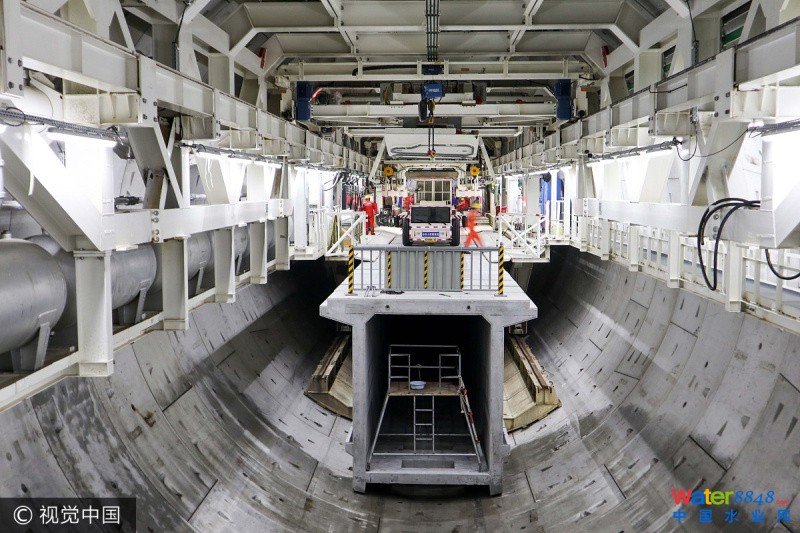 2017年10月11日,江蘇蘇州,中鐵十四局工作人員正在蘇通GIL(氣體絕緣輸電線路)工程進行盾構(gòu)機掘進作業(yè)。盾構(gòu)機正按照每天16米的速度穩(wěn)步向前掘進,截至10月11日,工程完成第500環(huán)管片的拼裝,隧道掘進里程達1000米,接近項目總長的18.3%。
