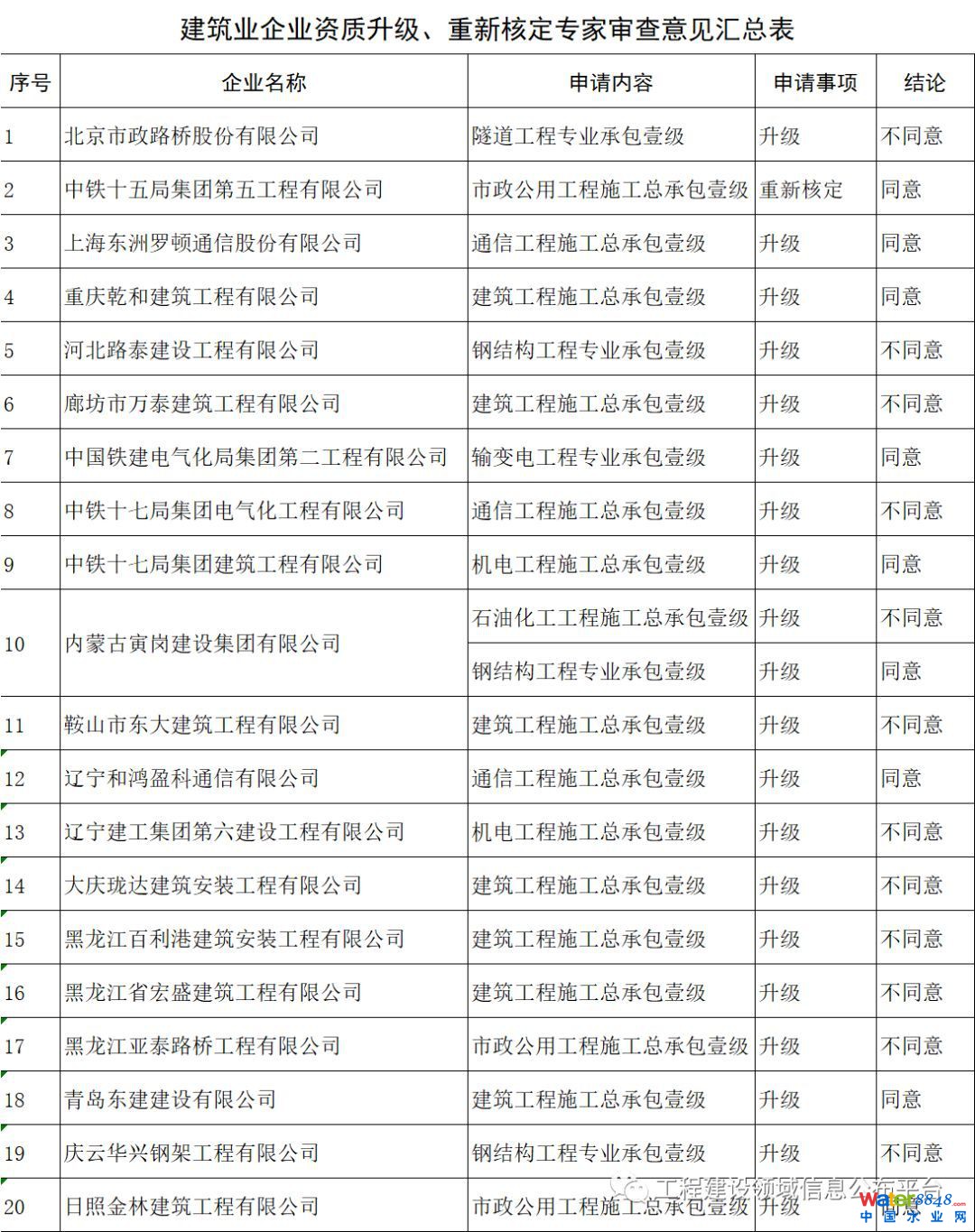 關(guān)于建設(shè)工程企業(yè)資質(zhì)資格專(zhuān)家審查意見(jiàn)的公示