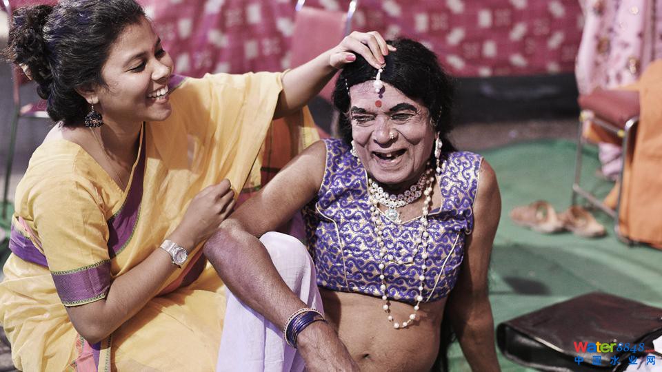 表演:圖右是一名92歲的印度男子,他是當(dāng)?shù)豅aundaNaach藝術(shù)家。他總是男扮女裝,而且,他從12歲就開(kāi)始這樣的表演了。