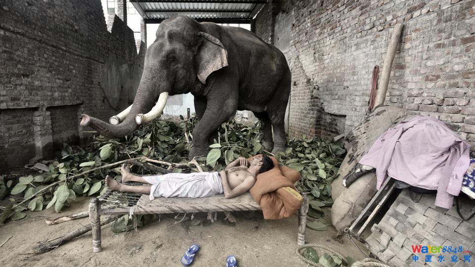 寒冷:新德里的一名男子睡在大象圈里,這里四處透風(fēng),幾乎不能遮風(fēng)擋雨。