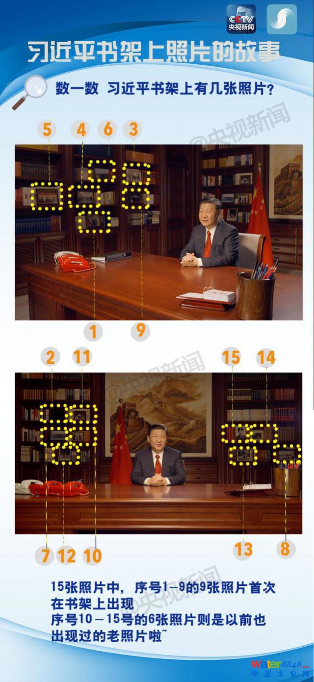 從 2014 年新年開始," 習(xí)近平新年賀詞 " 成為了每年新舊交替之際的新聞熱點(diǎn)和網(wǎng)絡(luò)熱議。" 擼起袖子加油干 "、" 我要為偉大的人民點(diǎn)贊 " 等等金句,因?yàn)槌霈F(xiàn)在習(xí)近平往年的 " 新年賀詞 " 中,而成為了中國社會的 " 流行語 "。同樣,習(xí)近平辦公室書架上,那一幅幅照片,也成為人們十分關(guān)注的 " 新年賀詞 " 的 " 背景 "。