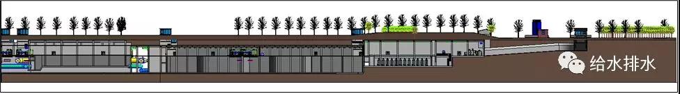 工程為8萬噸處理規(guī)模,占地面積5.79公頃,整個處理廠地下部分地下部分2.66公頃其他為地上部分。整個處理廠地下部分最深的地方埋深在16米,建好的地下部分,地下廠的上面有一米多的覆土,它的整體地方,整個廠的綠化率,如果不算廠的部分是32%的綠化率。