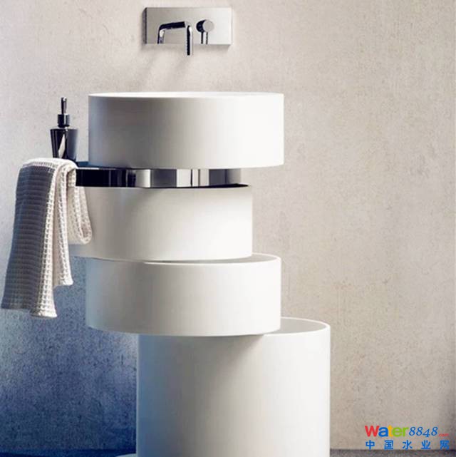 簡(jiǎn)約洗手盆,將一個(gè)圓柱體進(jìn)行了切割增添了置物功能