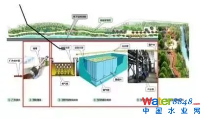 下層為污水處理設(shè)施、上層為日常生產(chǎn)運行管理及檢修空間,全部密封、加蓋,將水處理過程中產(chǎn)生的臭氣封閉在密閉空間內(nèi),不讓氣體外溢,以免影響周圍空氣環(huán)境;將密閉空間內(nèi)的氣體通過負壓收集和進行有效處理,使其達到國家排放標準后,無害化排放到空氣中;為減少水質(zhì)凈化廠的用地面積,提高水處理標準,還采用了國際領(lǐng)先的膜處理技術(shù)(MBR),使處理后的水更清、更好。