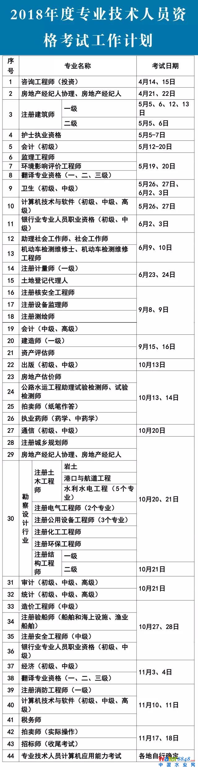 (推薦收藏)2018年專業(yè)技術(shù)人員資格考試時(shí)間公布