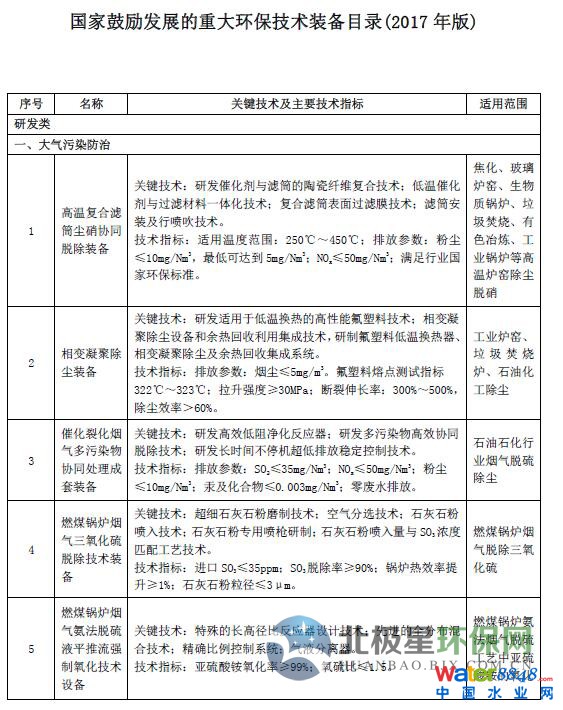 附件:國家鼓勵(lì)發(fā)展的重大環(huán)保技術(shù)裝備目錄(2017年版)