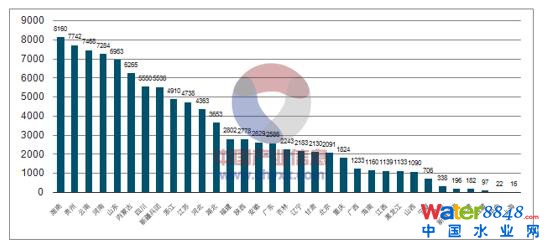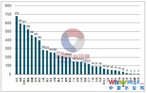 2017年9月管理庫各省項目數(shù)分布情況(單位:個)