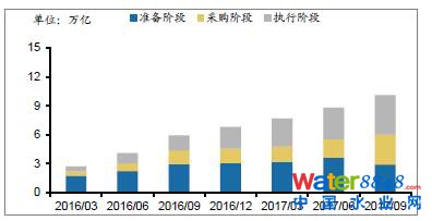 PPP管理庫項目投資總額為10.1萬億,項目數(shù)總額為6778個。自2016年3月末至2017年9月末,平均每季度增長項目847個、投資額1.2萬億,PPP項目需求持續(xù)加大。