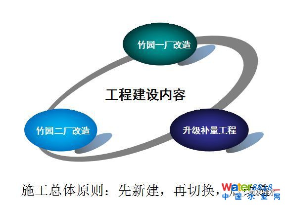 三座廠格局從一廠170萬噸減量提標(biāo),減了60萬噸。二廠原來50萬立方/天,減到30萬噸,這樣新建80萬噸升級補(bǔ)量,整個(gè)水量還是220萬立方米/天,從升級補(bǔ)量工程來看,也解決了雨水溢流問題,初期雨水污染預(yù)留了一塊地,所以這樣在第一個(gè)關(guān)鍵點(diǎn),新建配水要兼顧升級補(bǔ)量廠和初雨四廠,整個(gè)方案,下面是往上調(diào)水20萬噸,上面是旱季170萬噸的分流,雨季規(guī)模更大,而且不能斷水,環(huán)保要求施工過程中要保持整體運(yùn)行。