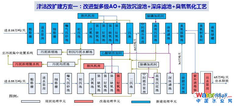 提出提標改造主體工藝路線:二級生物處理+深度處理+臭氧氧化。