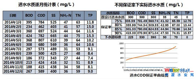 以咸陽路廠2014-2016年3月的水質(zhì)實測數(shù)據(jù)為基礎(chǔ),采用適當保證率確定設(shè)計進水水質(zhì)。