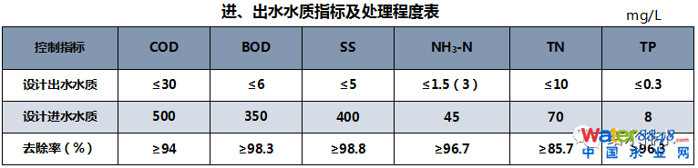 根據(jù)進出水水質(zhì)及各指標處理的難易程度,將TN、SS和CODcr確定為本次工程的重點處理項目,而BOD5、NH3-N和TP為重點關(guān)注項目。
