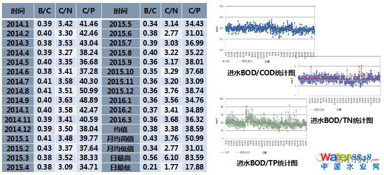 進水可生化性一般;大部分時間碳源不足;需考慮碳源提高措施,生物處理工藝優(yōu)先保證脫氮效率。