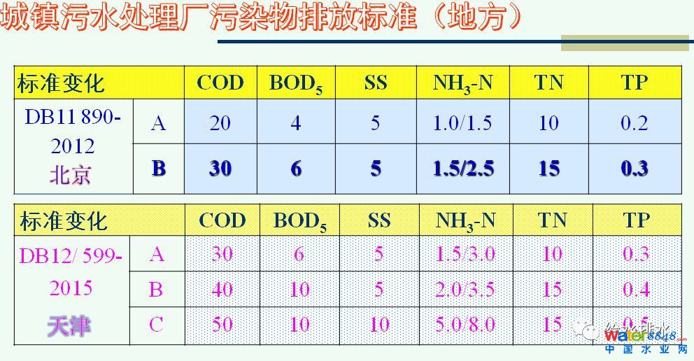 近幾年,地方的排放標(biāo)準(zhǔn)陸續(xù)的頒布,這些標(biāo)準(zhǔn)除了大腸桿菌指標(biāo)之外,其它很多指標(biāo)都已經(jīng)滿足再生水利用的要求,但是再生水的標(biāo)準(zhǔn)跟排放的標(biāo)準(zhǔn)之間它們有很多相同的地方,也有一些不同的地方。