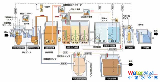 日本村落污水處理典型工藝:接觸曝氣法工藝流程