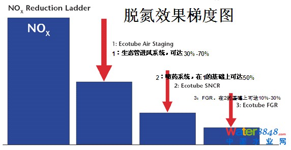 Ecotube 屬于低氮燃燒與煙氣脫硝技術(shù)相結(jié)合的技術(shù)類型,其技術(shù)特點(diǎn)如下:生態(tài)管系統(tǒng)是一種可改善燃燒工藝狀況,費(fèi)用-效益效果俱佳的工具,包括可收縮長槍(生態(tài)管),它帶有可注入試劑的噴嘴。不同的試劑可通過噴嘴在高的壓力和速度下導(dǎo)入燃燒爐。生態(tài)管被置于爐內(nèi)的關(guān)鍵的位置上注入試劑,造成與燃燒產(chǎn)物激烈的混合,導(dǎo)致燃?xì)庵纬赏耆旌系耐牧鳡顟B(tài)。另外,當(dāng)從生態(tài)管中噴入氨試劑時(shí)可以脫氮,當(dāng)噴入石灰時(shí),這個(gè)系統(tǒng)可以脫硫。
