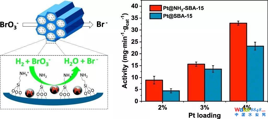 中文題目:Pt納米顆粒負(fù)載于氨基功能化SBA-15用于催化去除水中溴酸鹽
