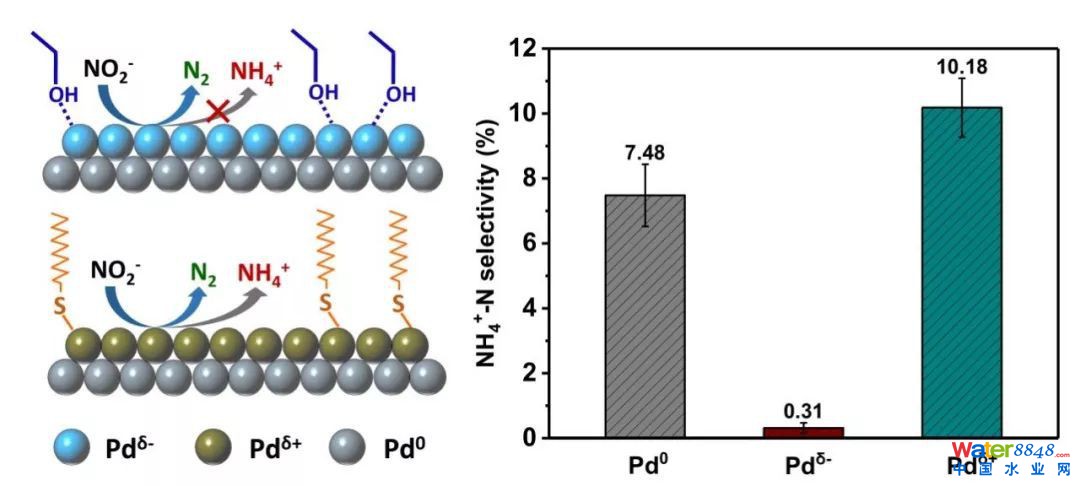 中文題目:鈀納米催化劑界面電子對(duì)催化還原亞硝酸鹽副產(chǎn)物氨氮選擇性的影響
