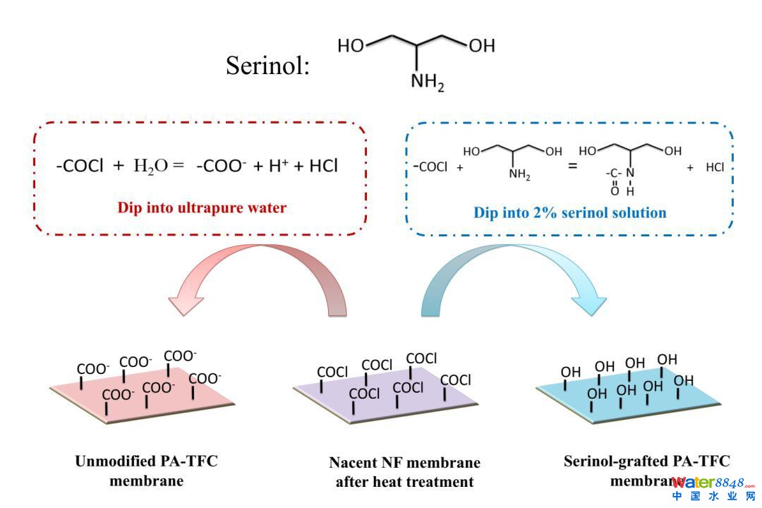 中文題目:對(duì)哌嗪基納濾膜表面進(jìn)行絲氨醇接枝改性以提高其處理聚驅(qū)采油廢水的抗污染能力