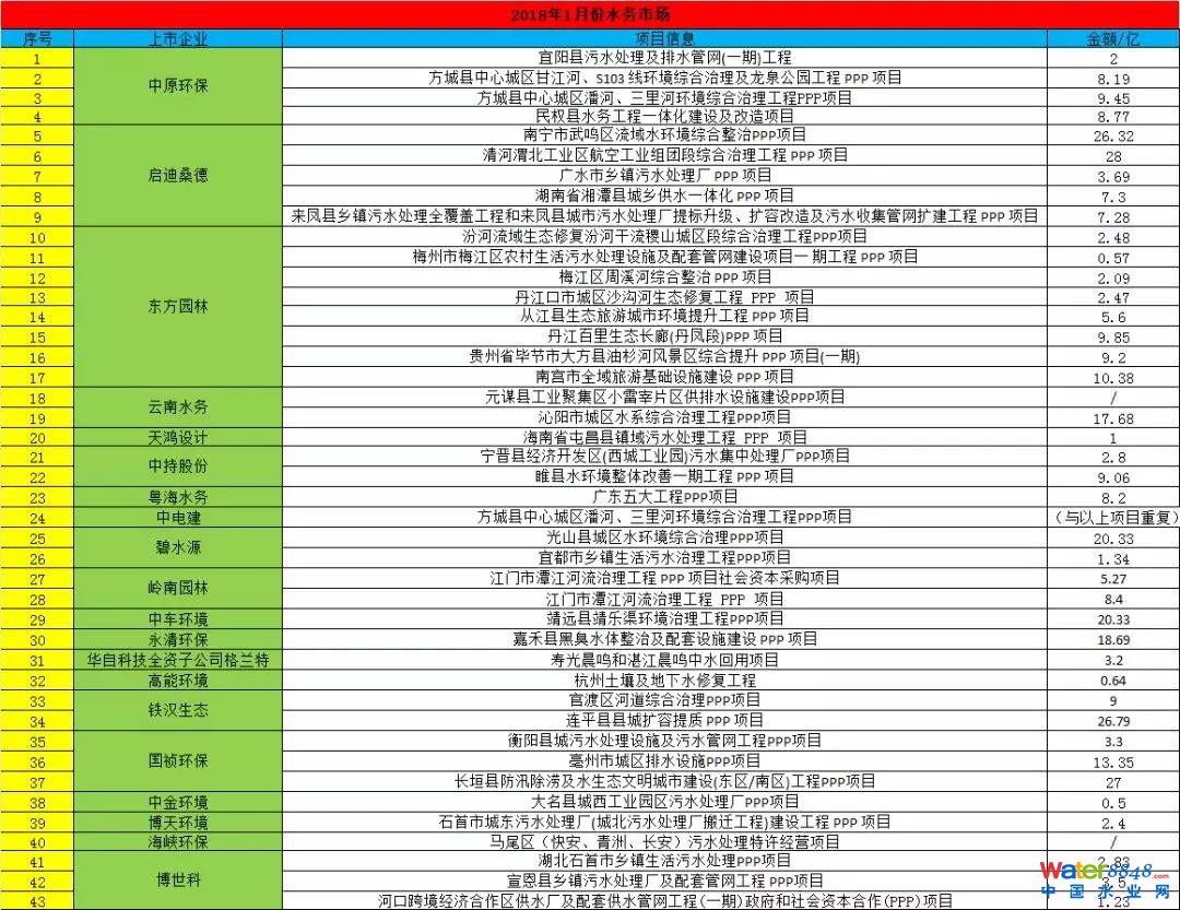 近期,PPP監(jiān)管趨嚴(yán),PPP市場(chǎng)走向理性、規(guī)范。從1月水務(wù)市場(chǎng)表現(xiàn)來(lái)看,以PPP模式釋放的水務(wù)項(xiàng)目似乎熱情未減,依然火熱,環(huán)保企業(yè)也是拿單不斷。