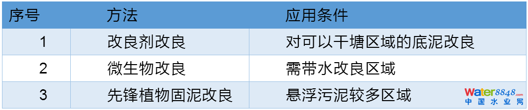 針對現(xiàn)場不同情況,采用了三種底泥改良方法,底泥經(jīng)過改良為沉水植物創(chuàng)造了良好生長條件。