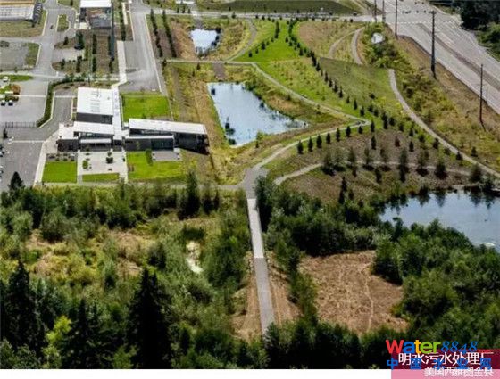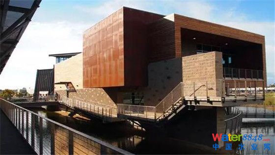 明水污水廠在2011年開始運(yùn)行,該廠是金縣40年來最大的水處理工程,也是美國乃至世界經(jīng)典的MBR污水廠。它也因?yàn)槠涑霰姵鏊|(zhì)榮獲Global Water Intelligence 2012年水回用項(xiàng)目的獲獎(jiǎng)單位。該污水廠最大的亮點(diǎn)是其環(huán)境和社區(qū)中心以及70公頃的公共空間、長達(dá)3英里的步行小徑和40公頃的自然棲息地。這也是個(gè)LEED認(rèn)證的建筑,包括了一系列可持續(xù)的元素,包括了自然通風(fēng)系統(tǒng)、自然采光、能源之星節(jié)能設(shè)備、中水回用(灌溉和沖廁)、節(jié)能照明和當(dāng)?shù)刂圃斓奶柲馨宓取?/p>