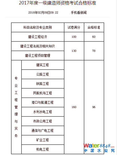 公布了2017年一建考試合格標(biāo)準(zhǔn)