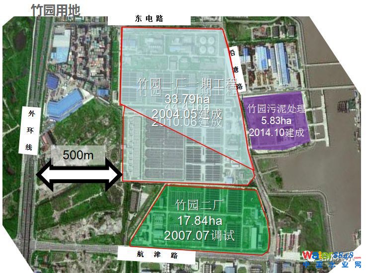 這個廠歷史比較悠久,一廠一期在2004年5月份建成,是一級強化的處理工藝,在2010年6月份建了二期提標工程,提標帶脫氮功能的強化。竹園二廠是07年7月調(diào)試,分別是170萬立方米/天和50萬立方米/天,整個可以用的地塊是在范圍內(nèi)做的提標。