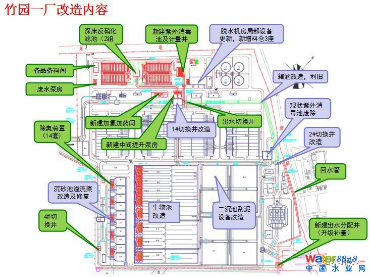 老廠原來的設(shè)施結(jié)果十多年的運行肯定有些預(yù)流的管道設(shè)施改造,除了這些,主要改造的是生物池怎么達到一級A標準。