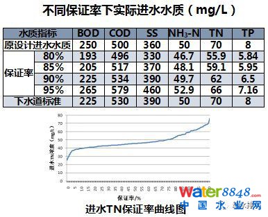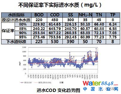 以咸陽路廠2014-2016年3月的水質(zhì)實測數(shù)據(jù)為基礎(chǔ),采用適當(dāng)保證率確定設(shè)計進水水質(zhì)。