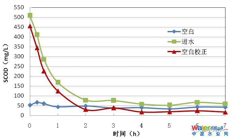 污水中溶解性不可生物降解COD比例是COD達標(biāo)和確定處理對應(yīng)工藝的關(guān)鍵。通過工程預(yù)研究,污水中溶解性不可生物降解COD為18mg/L左右。