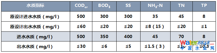 根據(jù)進出水水質(zhì)及各指標(biāo)處理的難易程度,將TN、SS和CODcr確定為本次工程的重點處理項目,而BOD5、NH3-N和TP為重點關(guān)注項目。