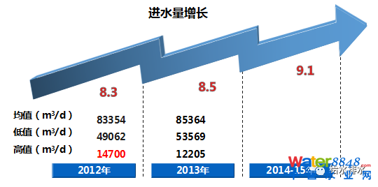 以北倉廠2014年的水質(zhì)實測數(shù)據(jù)為基礎(chǔ),采用適當(dāng)保證率確定設(shè)計進水水質(zhì)。