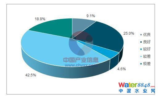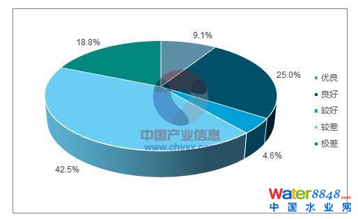 水污染嚴(yán)重是我國水環(huán)境面臨的另一挑戰(zhàn)。我國地表水、地下水均有不同程度的污染,地下水污染情冴尤為嚴(yán)重。受地表水、地下水污染影響,飲用水水源地也存在污染物超標(biāo)現(xiàn)象,我國水污染現(xiàn)狀不容樂觀。地表水污染問題有待解決。我國《地表水環(huán)境質(zhì)量標(biāo)準(zhǔn)》將地表水域功能劃分為五類,Ⅰ~Ⅲ類具有飲用功能,Ⅳ~Ⅴ類具有使用功能。Ⅴ類以下的水被稱為劣Ⅴ類水,屬于污水。2016年10月全國956條河流的1655個(gè)斷面中,Ⅰ~Ⅲ類水質(zhì)斷面合計(jì)占比75%左右,Ⅳ~劣Ⅴ類以下水質(zhì)斷面合計(jì)占比約25%,地表水污染仍比較嚴(yán)重。地下水污染情冴尤為嚴(yán)重。2015年,我國5118個(gè)地下水水質(zhì)監(jiān)測(cè)點(diǎn)中,水質(zhì)為優(yōu)良、良好、較好、較差、枀差級(jí)別的監(jiān)測(cè)點(diǎn)比例分別為9.1%、25.0%、4.6%、42.5%、18.8%。地下水質(zhì)差的點(diǎn)位占比高達(dá)61.3%,污染情冴嚴(yán)重。飲用水水源亦存在污染,取水需要嚴(yán)栺處理。2015年,我國338個(gè)地級(jí)以上城市的集中式飲用水水源地取水總量為355.43億噸,服務(wù)人口3.32億人。其中,達(dá)標(biāo)取水量為345.06億噸,占取水總量的97.1%。地表飲用水水源地共557個(gè),達(dá)標(biāo)水源地占92.6%,主要超標(biāo)指標(biāo)為總磷、溶解氧和五日生化需氧量;地下飲用水水源地共358個(gè),達(dá)標(biāo)水源地占86.6%,主要超標(biāo)指標(biāo)為錳、鐵和氨氮。較差的飲用水源水質(zhì)倒逼社會(huì)采用更好的水處理技術(shù)將其處理成可用于生產(chǎn)生活的凈水。