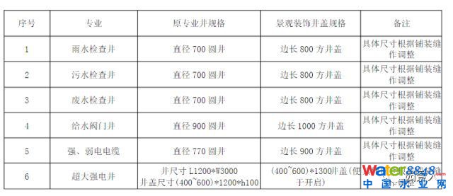 規(guī)格:按照綜合管網(wǎng)各專業(yè)井需求確定景觀裝飾井蓋大小,原則保證被覆蓋的專業(yè)井蓋可以開啟;材質(zhì):邊框?yàn)?04不銹鋼,底版為鍍鋅鋼板,面層同周邊地面鋪裝材料;色彩:不銹鋼本色;