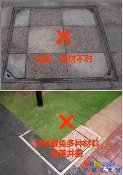 小區(qū)園林路面井蓋需用做不銹鋼(304)或合金材料做井蓋,防止生銹,并且保證剛度。