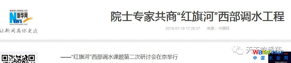 2018年1月,紅旗河西部調水課題第二次專家研討會在北京舉行,專家們這一方案的重點、難點進行了深入探討。來自國內方方面面的專家都參與了這次會議,包括中科院、中國水利水電科學研究院、黃河水利委員會、長江水利委員會、南水北調總公司以及清華、北大等多家單位相關領域的專家、教授。