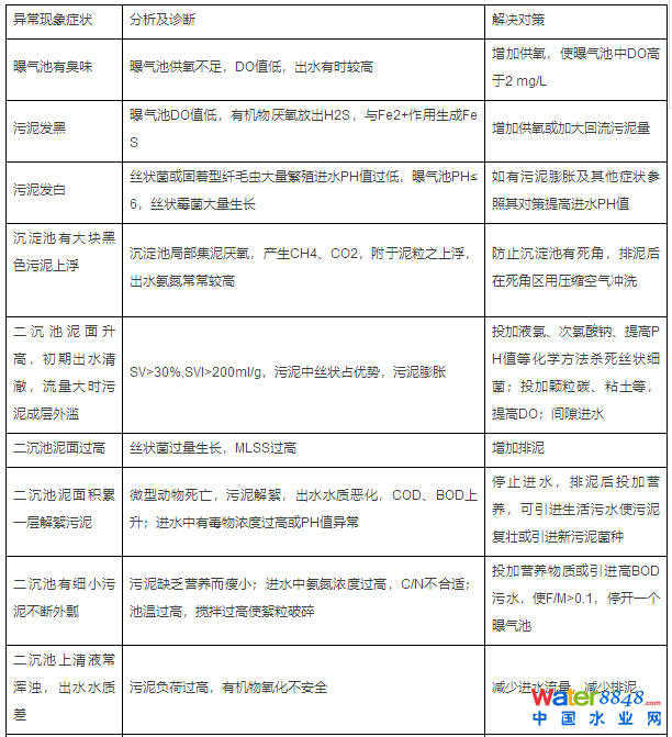 污水處理廠(氧化溝工藝)常見(jiàn)的異常情況及分析